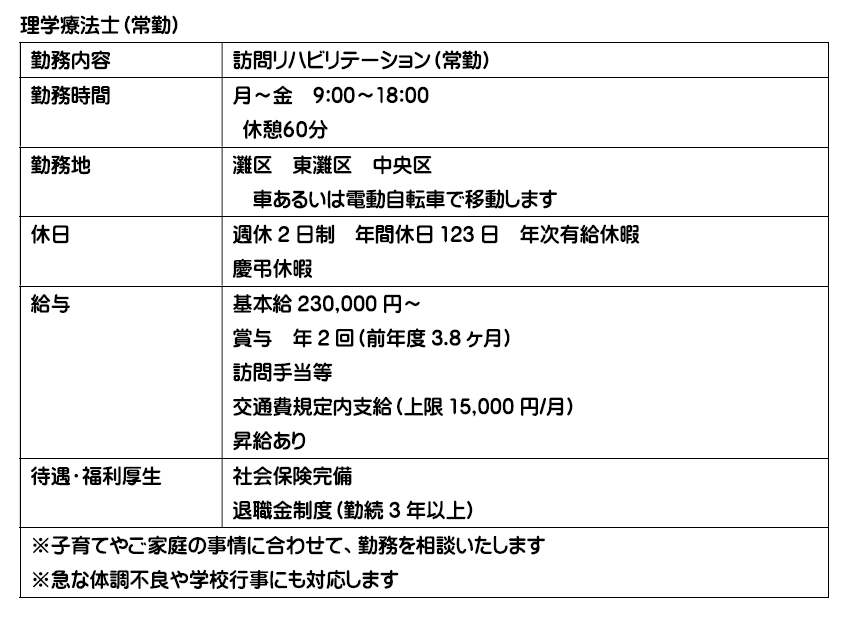 訪問看護師さん・理学療法士さん 募集中